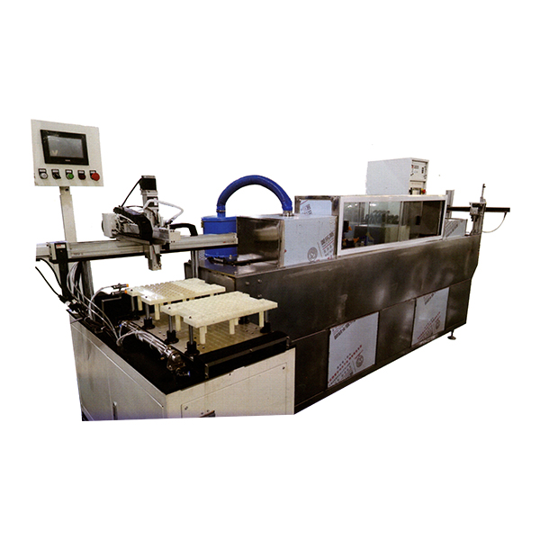 ①机械手/自动定位上料、传送带定位清洗、吹干、涂油、机械手/自动出料、自动放入120孔位料盘内; ②采用三轴机械手实现自动上下料装盘功能,100%稳定可靠; ③触摸屏参数可设定,自动显示检测画面,数据自动统计。