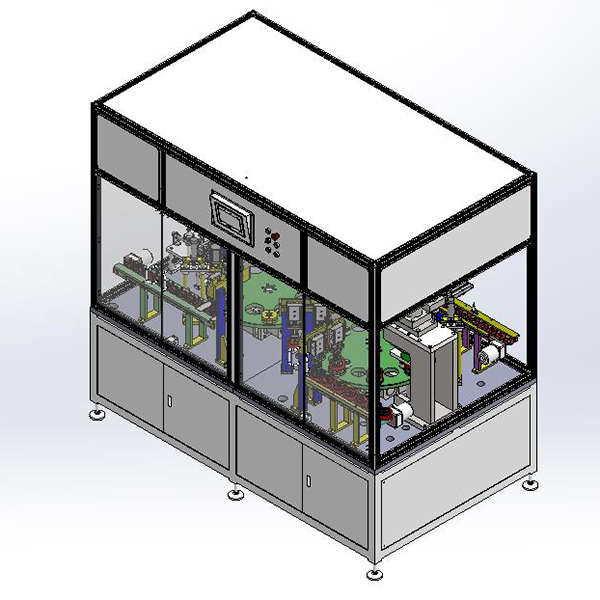 洗衣机离合器装配设备系列设备概述 MM-YYL-02 行星轮全自动装配机主要用于洗衣机离合器零部件的全自动的装配检测,替代人工装配,设备结构简单,调整方便,高效稳定; 功能描述 1、集自动上料、自动装配、铆合、过程检测等功能为一体的自动化设备; 2、采用CCD影像检测技术判定产品是否装配到位合格,100%稳定可靠。 3、触摸屏参数可设定,自动显示检测画面,数据自动统计。 设备图片